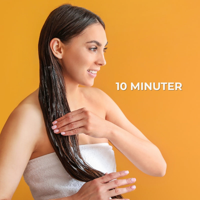 Applicera i handdukstorkat hår minst en gång i veckan. Låt verka minst 10 minuter – gärna längre för extra effekt – och tvätta sedan ur som vanligt. Perfekt som en återkommande boost för ditt hår!