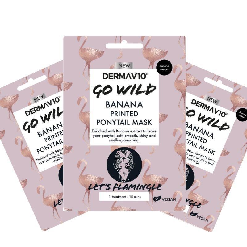 Vår Derma V10 GO WILD Banana Printed Ponytail Mask är berikad med bananextrakt för att hjälpa till att återfukta och återuppliva din hästsvans och lämnar den mjuk, glänsande och doftar fantastiskt. Veganvänlig.