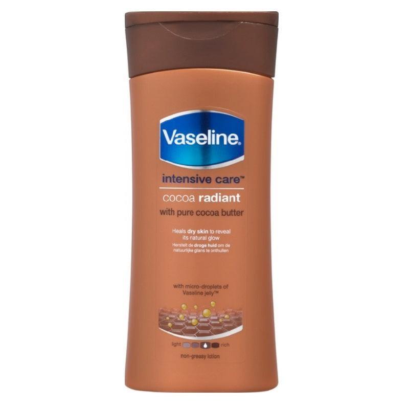 Unna huden en mjuk, strålande känsla med Vaseline Lotion Cocoa Radiant. Den återfuktande formulan är berikad med kakaosmör och micro-droppar av Vaseline-jelly som ger huden näring, lyster och en härlig naturlig glans. Absorberas snabbt och lämnar en varm, subtil doft av kakao.